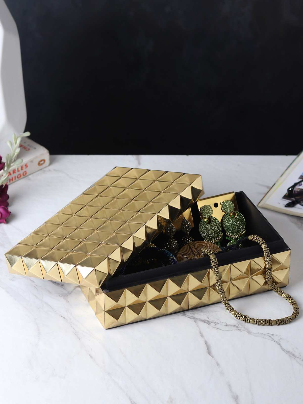A Statement Of Refined Grandeur, The Imperium Prism Box Features A Striking Geometric Facade With A Gleaming Metallic Finish?Available In Gold Or Silver. Perfect For Storing Cherished Keepsakes Or Serving As A Sculptural Accent, It Embodies Sophisticated Opulence With A Modern Edge.