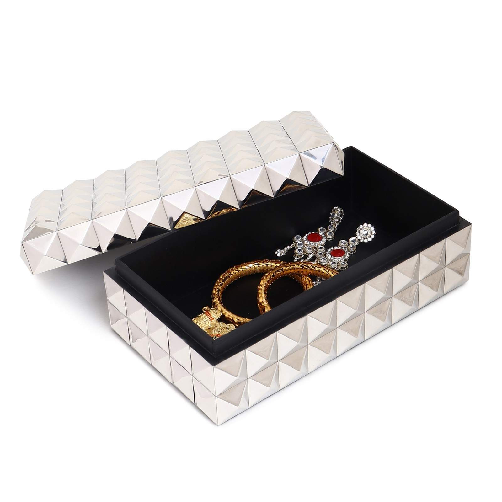 A Treasure Chest For The Modern Age, The Imperium Prism Box In Silver Gleams With Regal Charm. Its Prism-Inspired Design Reflects Light In Captivating Angles, Turning Every Glance Into A Moment Of Discovery. Sturdy Yet Refined, It?S Perfect For Storing Keepsakes, Jewelry, Or Cherished Trinkets, Adding A Touch Of Contemporary Luxury To Your Space While Keeping Your Treasures Safe And Stylish