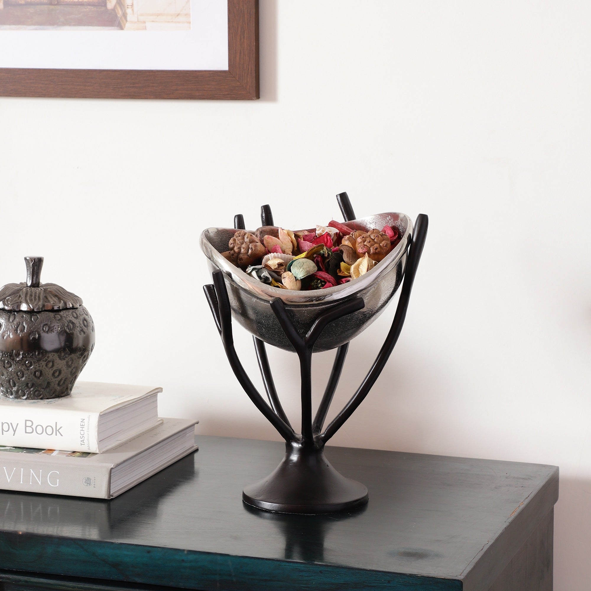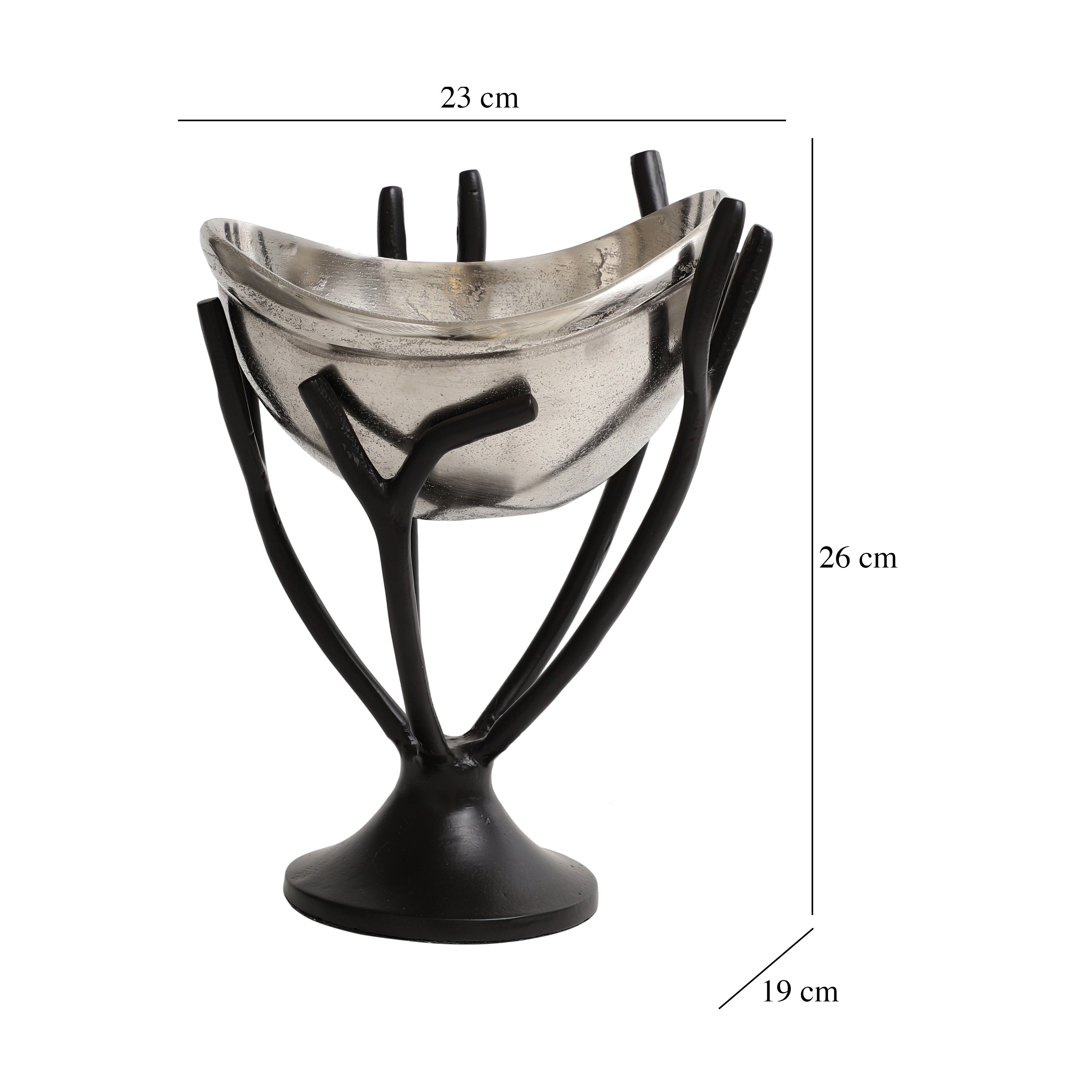 Introducing the Vine Trap Bowl in Gold: a harmonious blend of form and function. This captivating bowl on stand redefines sophistication with its intricate vine-inspired design and shimmering silver finish. Meticulously crafted, its delicate vines intertwine gracefully, casting a mesmerizing visual spell. Whether displaying fruits, potpourri, or standing alone as a statement piece, the Vine Trap Bowl exudes elegance in any space. Elevate your decor with this timeless centerpiece, where beauty and functionality harmonize in radiant Gold.