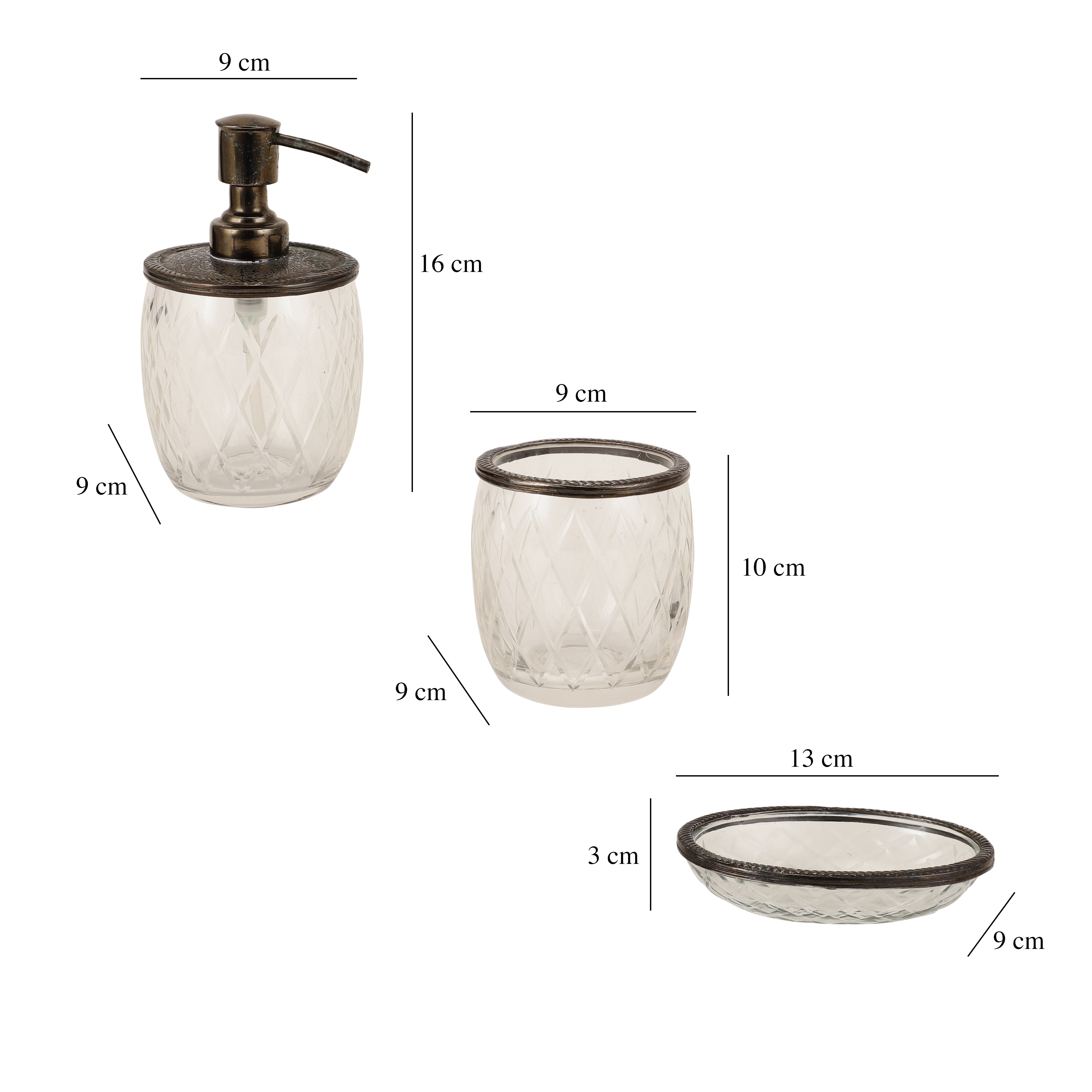Olivia Daimond Crystal Cut bathroom set in gold