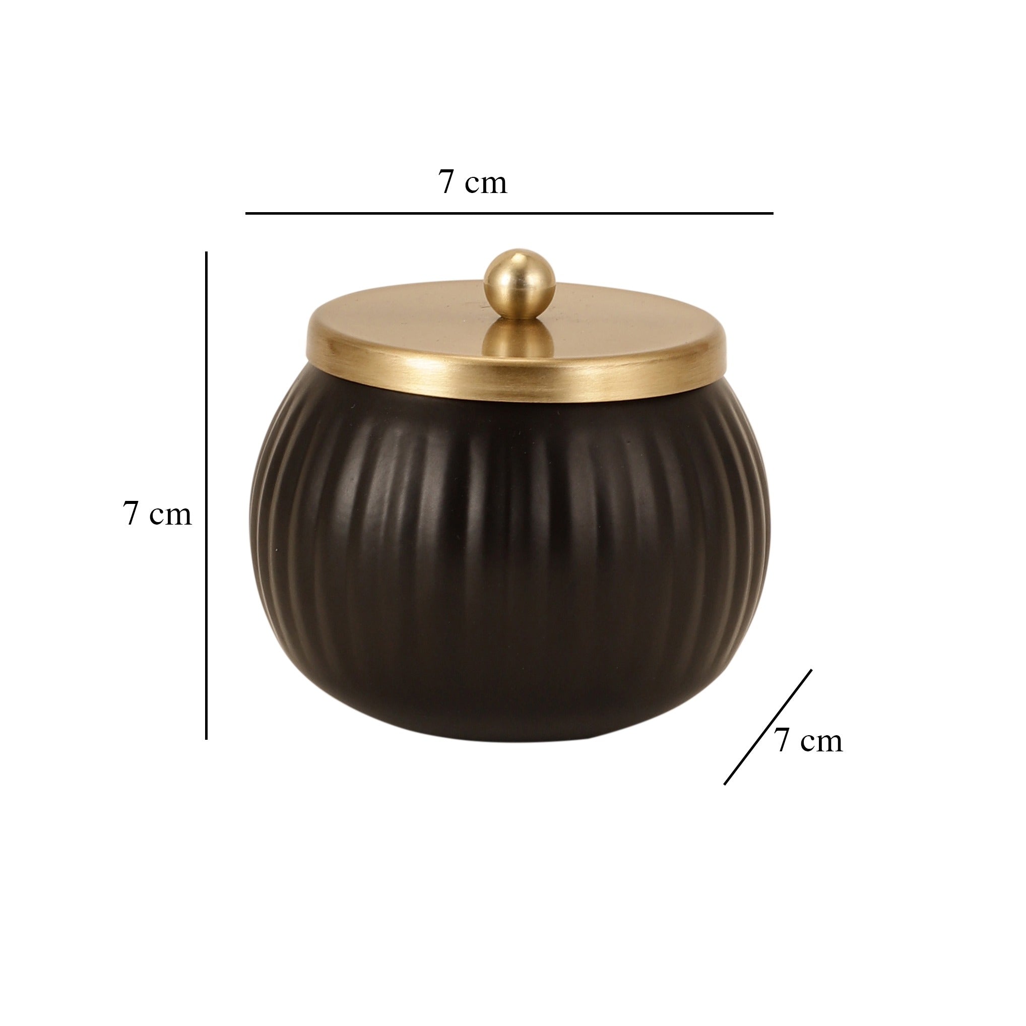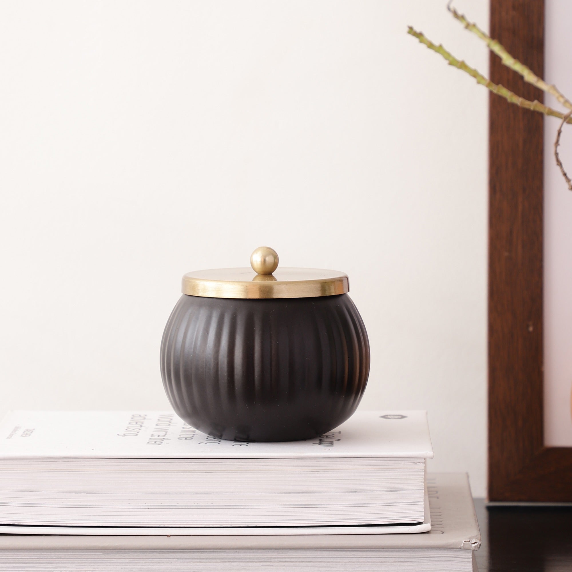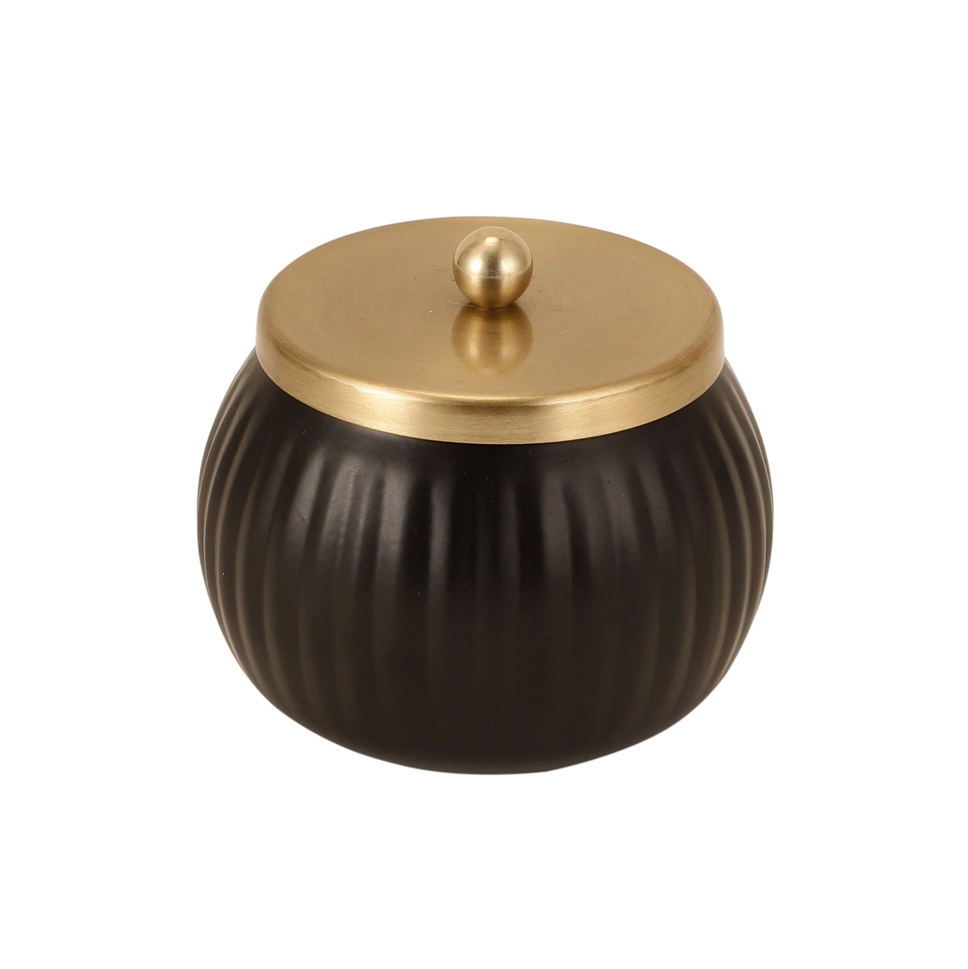 Introducing Luxora Box: a black metal container with a gold lid that blends timeless beauty with contemporary design. Its sleek silhouette and minimalist aesthetic make it a versatile statement piece for any space. Crafted for both style and function, it's the perfect way to showcase and store your most treasured items. Elevate your decor with the sophistication of Luxora Box.