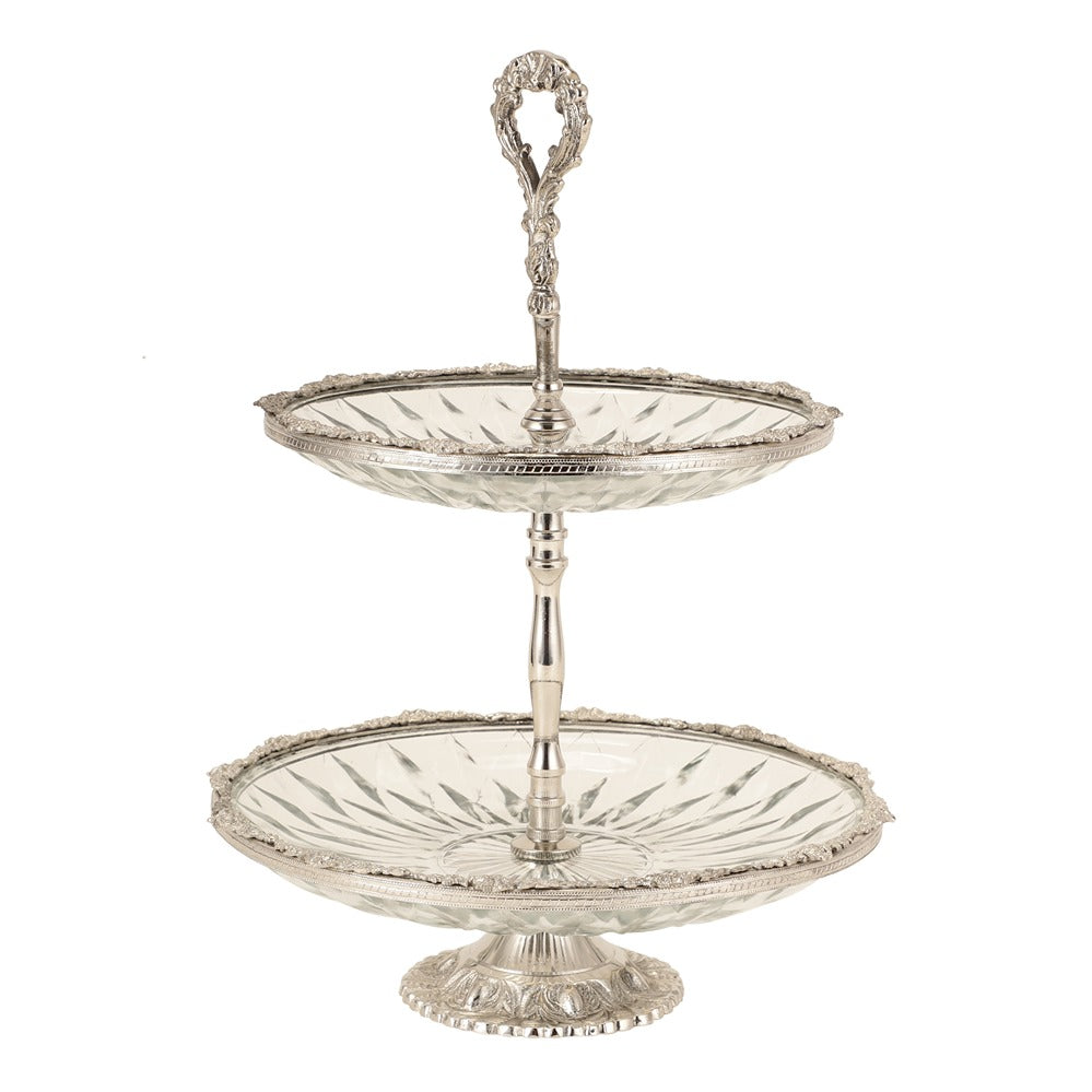 Spearhead Crystal Double Cake Stand in Silver Spearhead Crystal Double Cake Stand in Silver