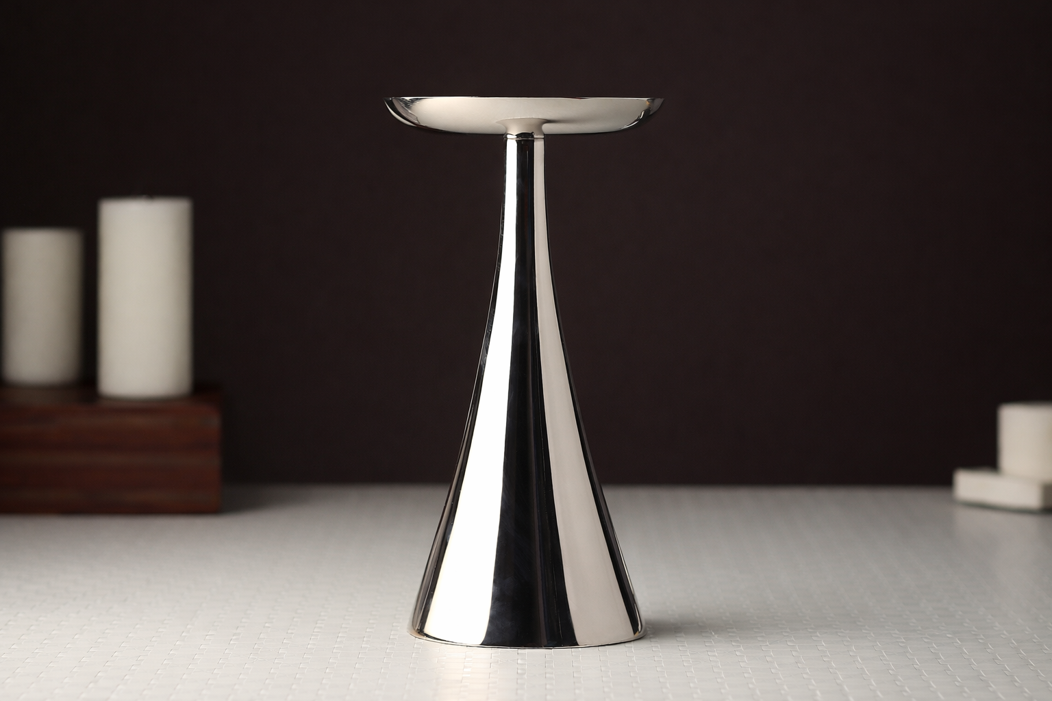 Understated yet refined, the petite silver holder embodies minimalist luxury. Ideal for intimate lighting, it pairs versatility with a subtle, polished charm. Pair it with Aureus Tall Gold Pillar Candle Stand to complete the set.