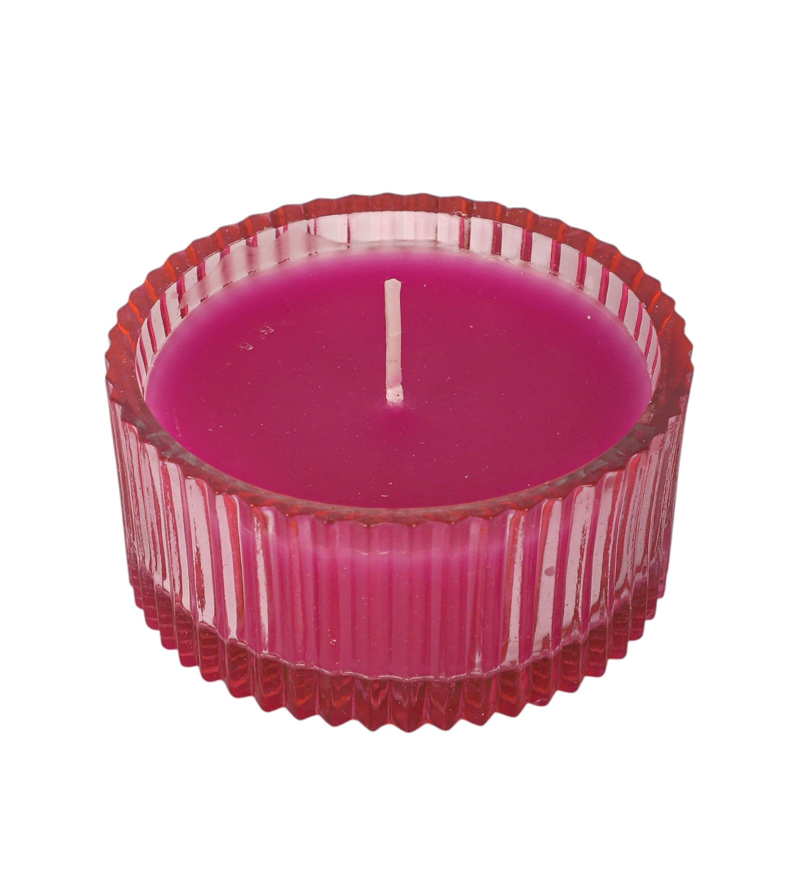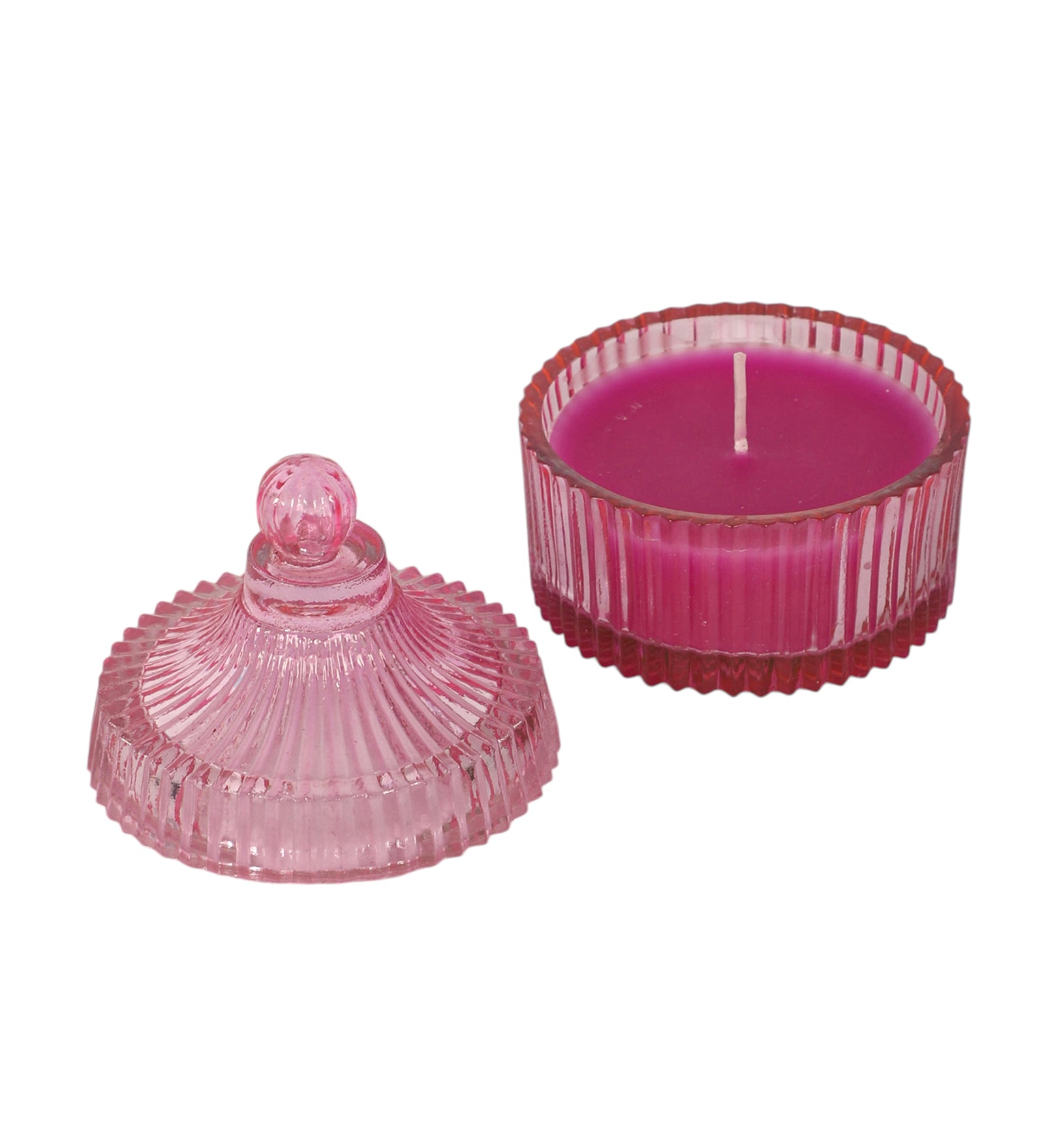 In soft pink glass, this candle carries a gentle bouquet of rose and powdery florals, evoking tender elegance.