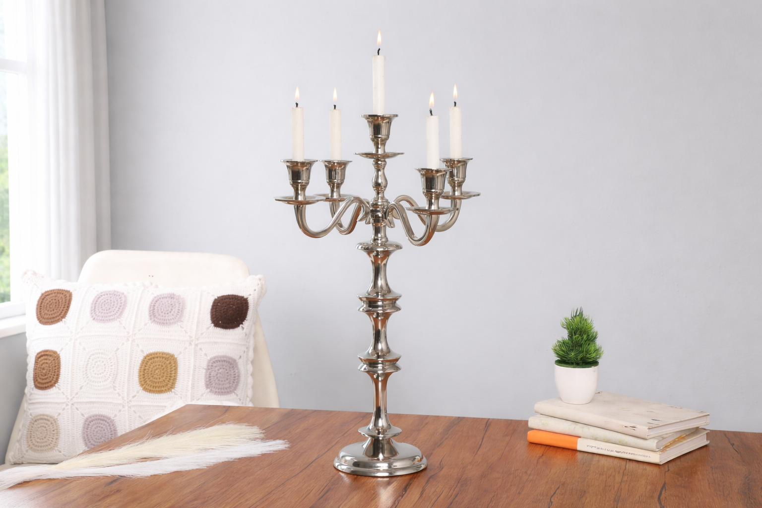 A commanding centerpiece, the Imperium Grande 5-Arm Candleholder is designed to exude stately elegance. With its sweeping branches and polished finish, it transforms any space into a royal banquet setting, casting a warm, multi-flame glow reminiscent of imperial halls. Combine it with other Imperium Candle Holders to complete the look