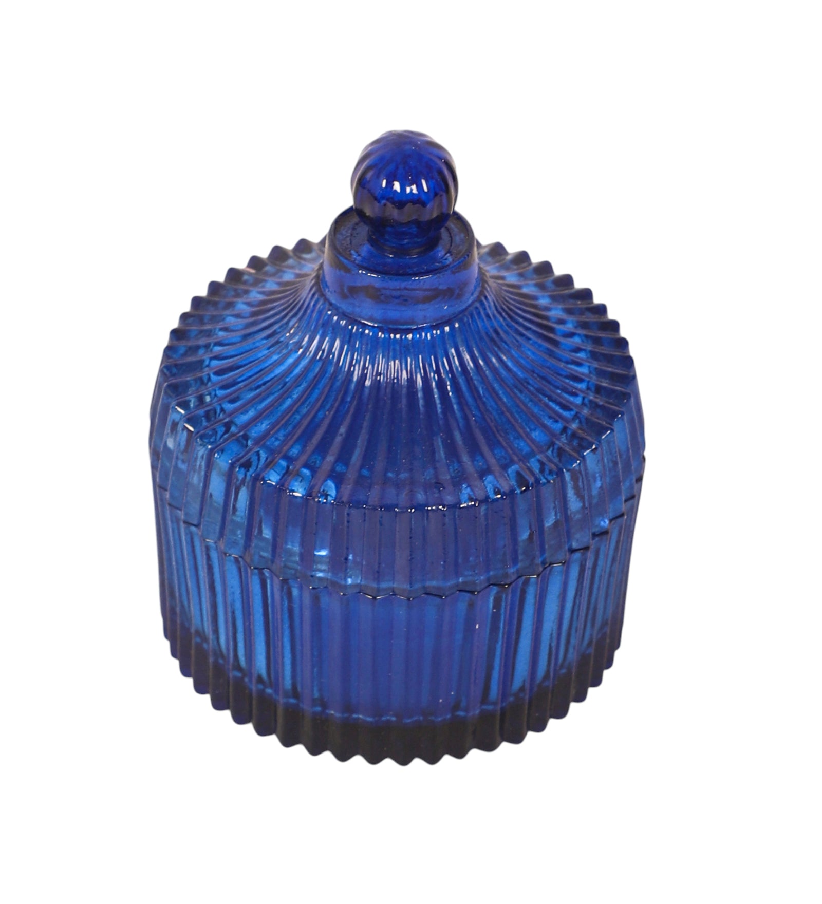 In rich blue glass, this scent unfolds with fresh floral accords, calming and uplifting in equal measure.