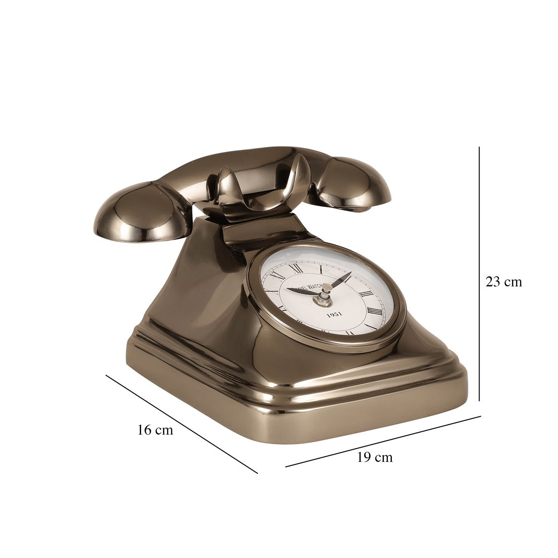 Step back in time with our Dial Time Vintage Telephone Table Clock, a charming fusion of nostalgia and practicality. Inspired by the iconic rotary phones of yesteryears, this unique timepiece features a clock nestled within the dialing plate, adding a whimsical twist to traditional timekeeping. Crafted with attention to detail and quality materials, Dial Time not only serves as a functional timepiece but also doubles as a conversation piece and a stunning addition to any room's decor.