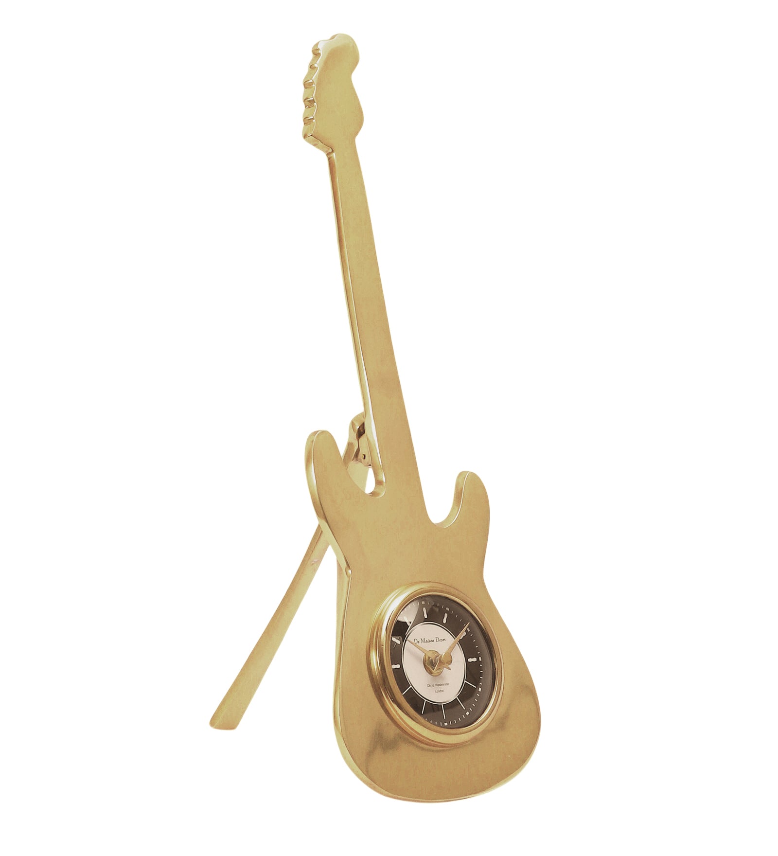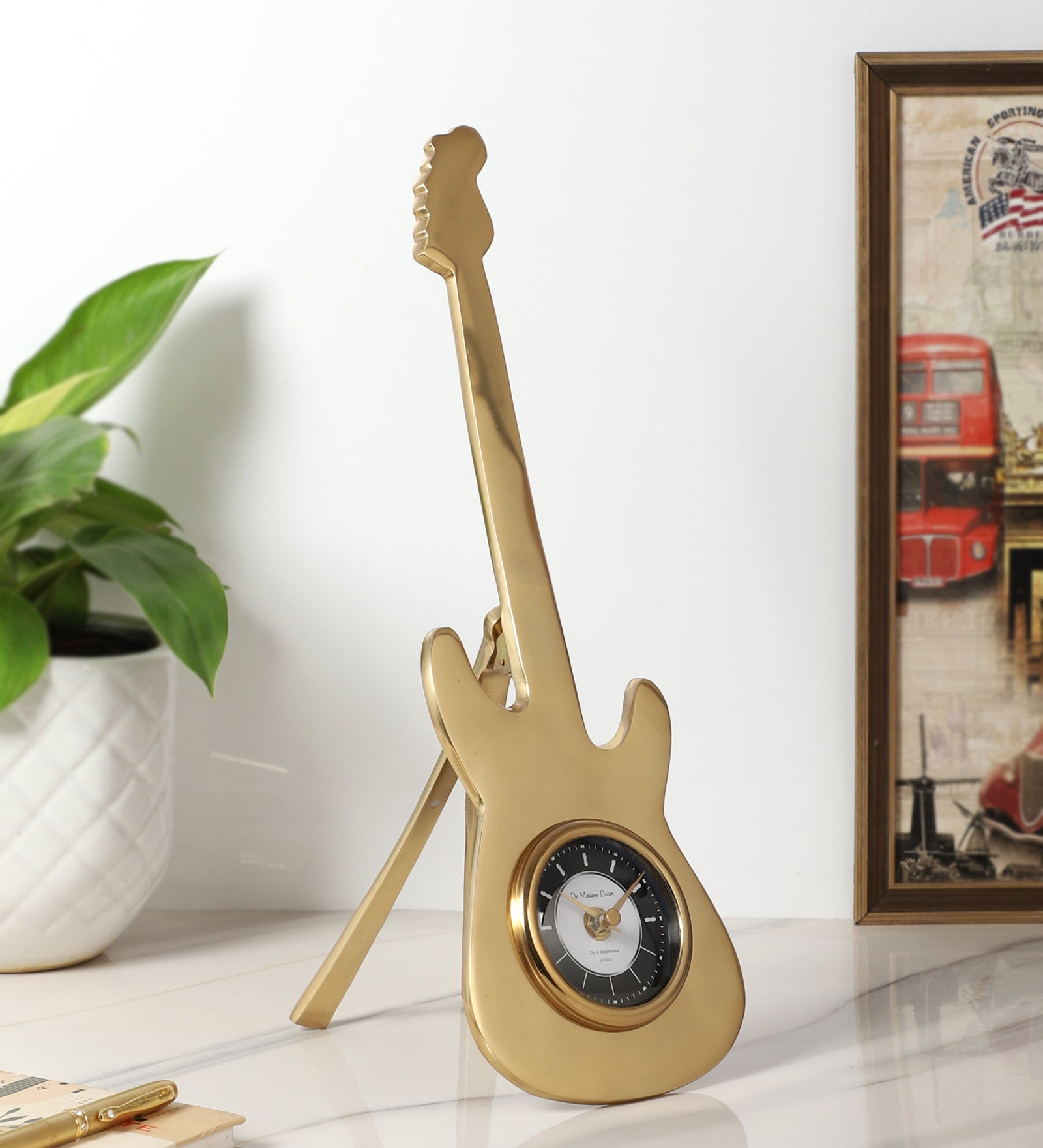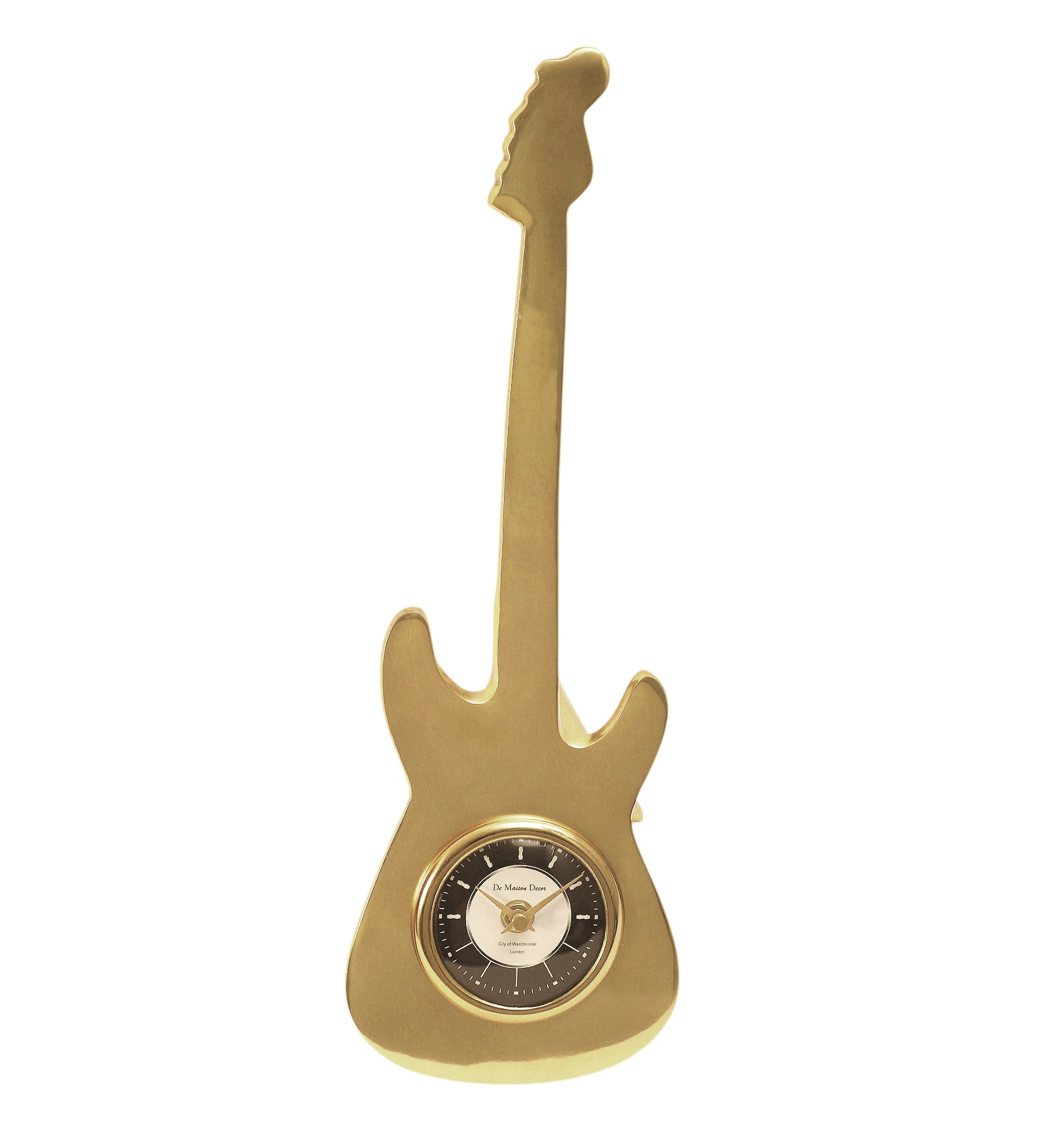 A tribute to timeless tunes, the Encore Table Clock strikes a perfect balance between music and metal. Shaped like a guitar, this charming piece adds a lyrical edge to your décor while keeping time in rhythm.