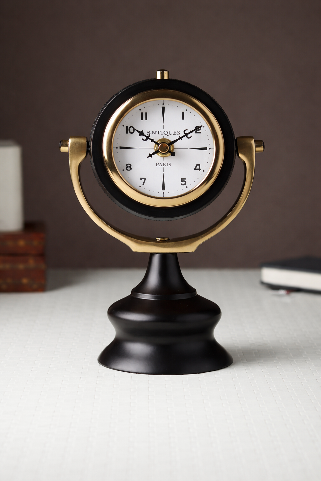 Inspired by the seafaring instruments of old, Marinus captures the essence of timeless exploration. With its graceful pedestal form and dual-finish detailing in gold and Black, this table clock echoes the precision and elegance of navigational compasses once trusted by voyagers across uncharted horizons. A refined statement for those who value both heritage and discovery.