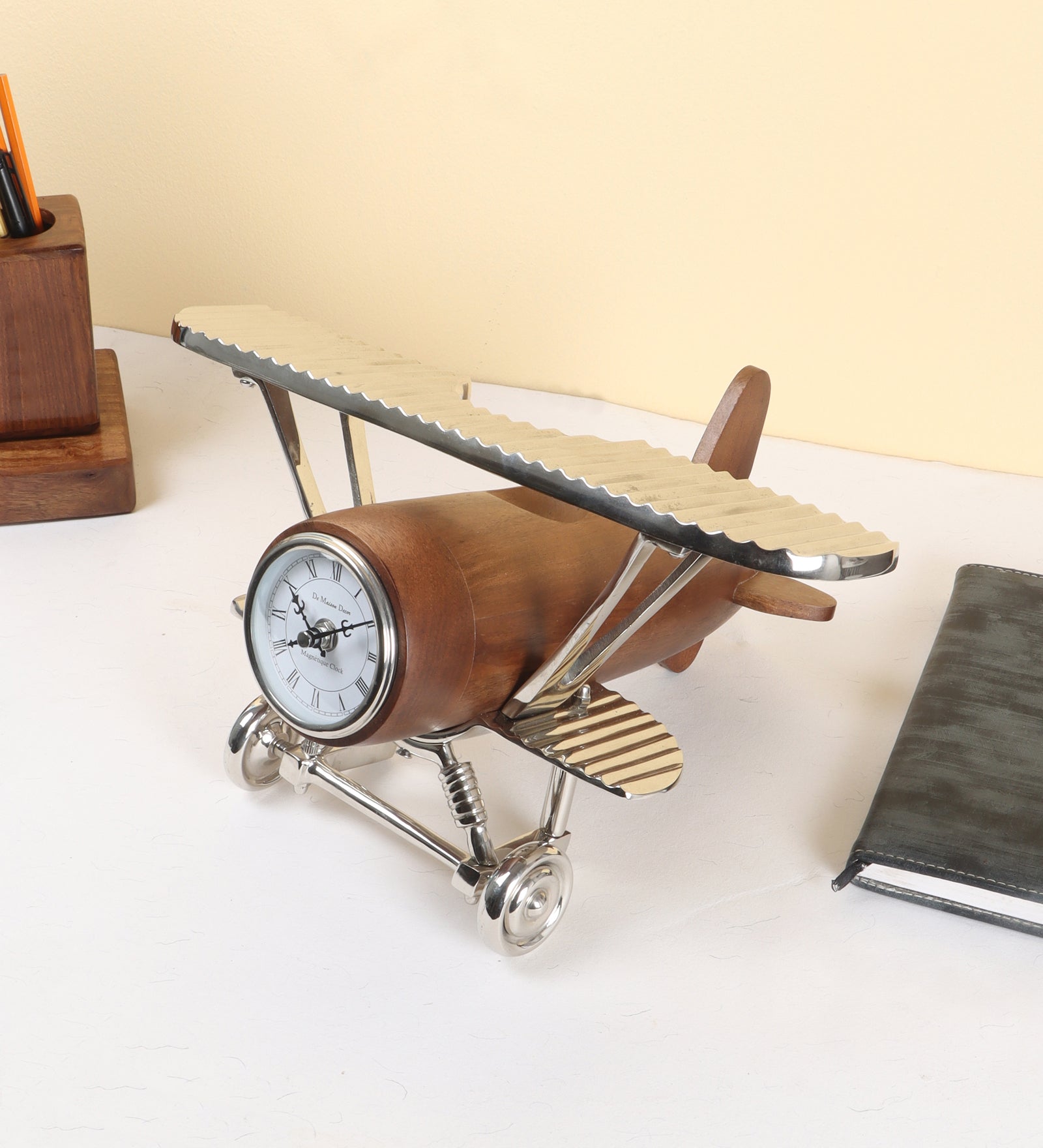 The Meridian’s Sentinel Table Clock stands as a guardian of time, its design inspired by the age of exploration. Crafted in rich HM Wood with gleaming Silver accents, it echoes the instruments once trusted to mark meridians and chart unknown horizons. A timeless piece that blends history, precision, and enduring charm.