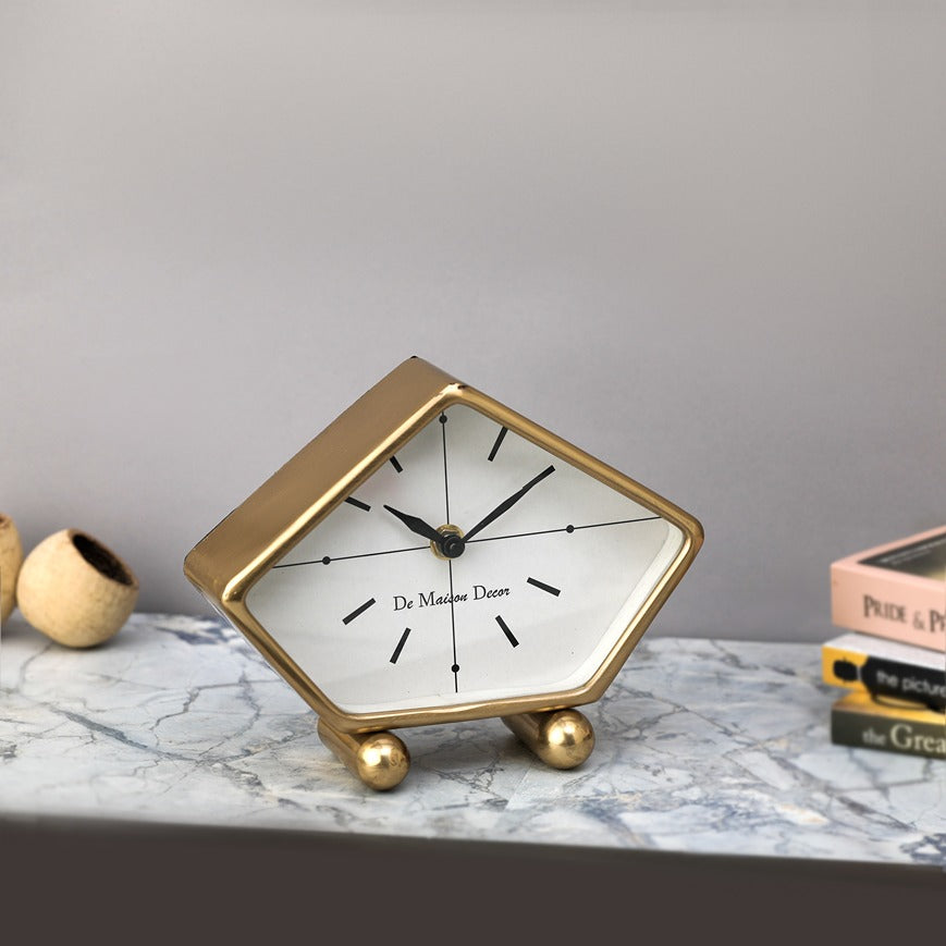 Inspired By The Pentagon Shape - The Penta Time Table Clock Will Add A Touch Of Modern Sophistication To Your Desk Or Nightstand With This Unique Clock Features A Sleek Pentagon Shape That Is Both Functional And Stylish. The Clock Face Is Easy To Read, With Bold Numbers And Sleek Hands, While The Metallic Finish Adds A Touch Of Elegance To The Design. Perfect For Anyone Who Appreciates Minimalism And Simplicity, The Penta Time Table Clock Is A Must-Have Accessory For Any Contemporary Living Space.