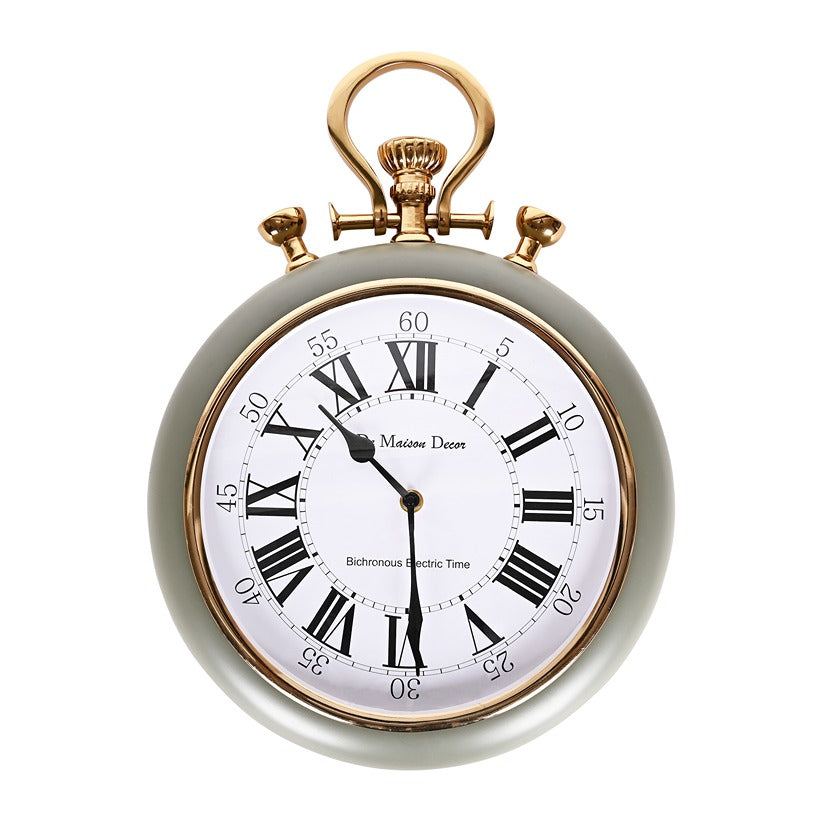This Wall Clock Is A Tribute To The Classic Pocket Watches Of Yesteryear, With A Unique Design That Features Three Knobs At The Top And A Black Outer Casing. The Gold Knobs Add A Touch Of Luxury And Elegance To The Piece, While The Vintage-Inspired Design Is Sure To Appeal To Those Who Appreciate The Finer Things In Life. The High-Quality Materials And Attention To Detail Ensure That This Clock Keeps Time Accurately And Reliably, Making It A Great Addition To Any Room In Your Home.