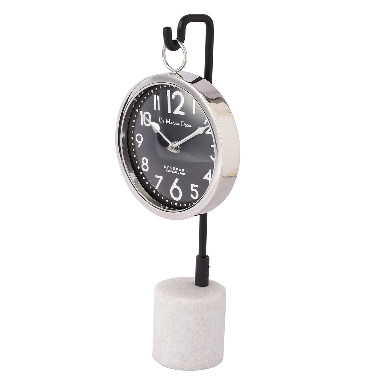 This Unique Table Clock Is A True Work Of Art, Featuring A Luxurious Marble Base And A Hanging Stand With A Hook To Suspend The Clock. The Sleek Design And Clean Lines Make This Clock A Perfect Addition To Any Modern Or Traditional Decor. The High-Quality Materials Ensure That This Clock Will Be A Treasured Piece In Your Collection For Years To Come. Whether Placed On A Desk Or Tabletop, This Clock Will Surely Make A Stylish Statement.