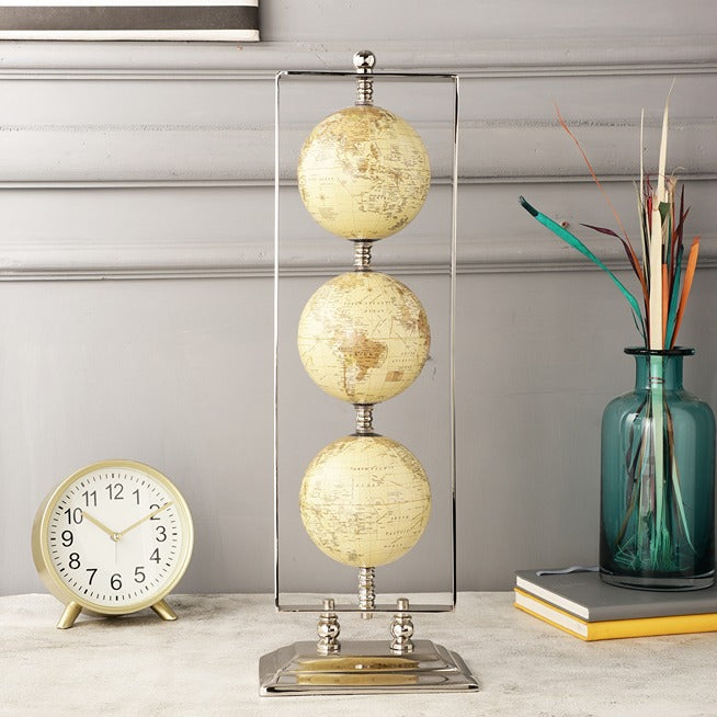 The "Vertical Triple Globe Stand "By Decor De Maison A Perfect Desk Accessory To Let You Flow In Work Spirit Along With Lending Working Vibes With The Astonishing Three Globe Stand. The Globes Is Handcrafted With Metal Arcs Which Is Sure To Add The Winning Moments By Uplifting The Office Decor In The Global Spirit. Available In 2 Finishes - Makes It A Must Have.