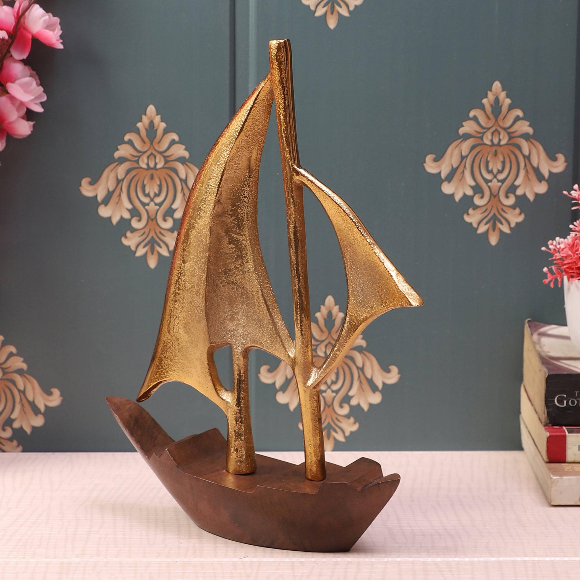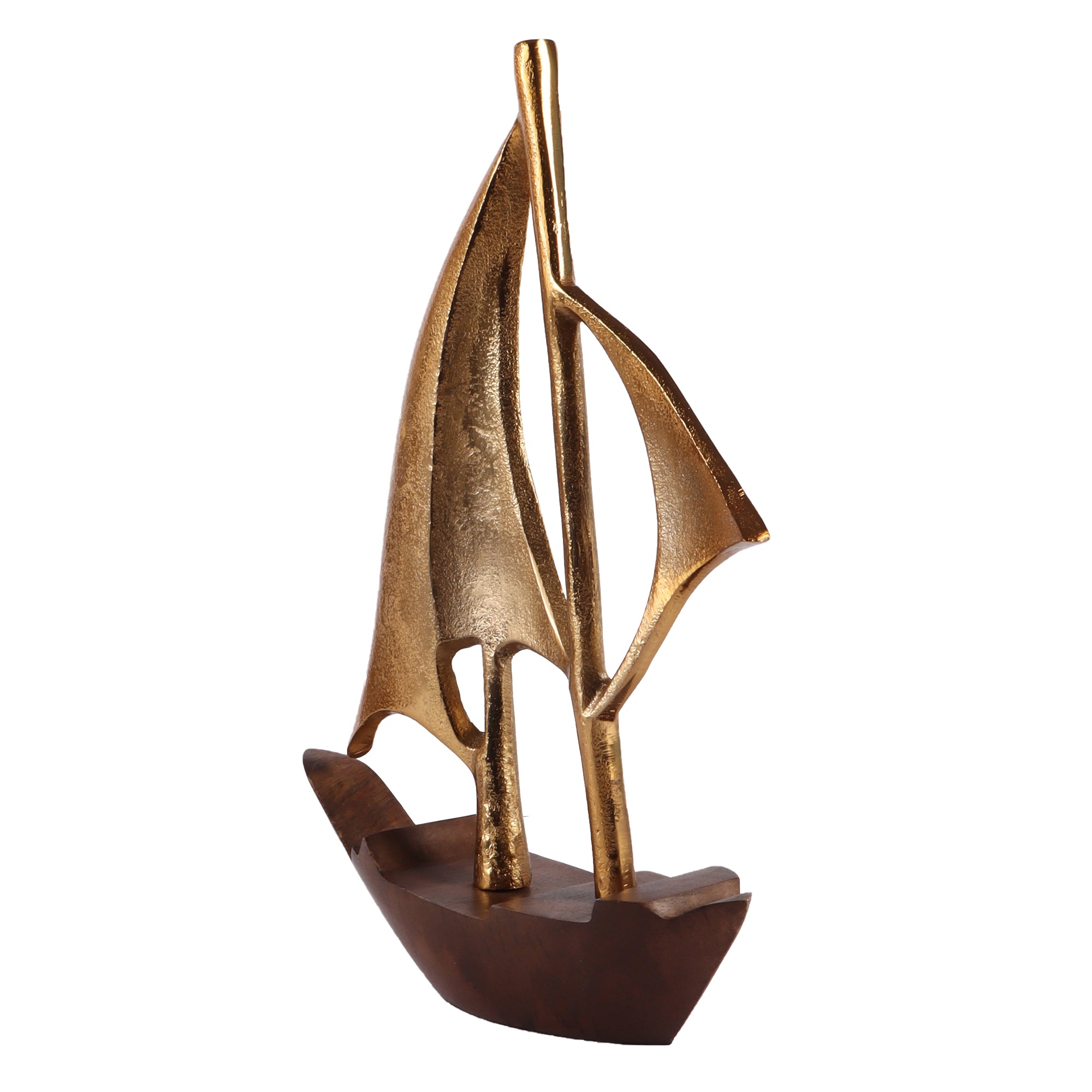 Nautical Sailing Boat- Raw Matt Gold Aluminum and Wood