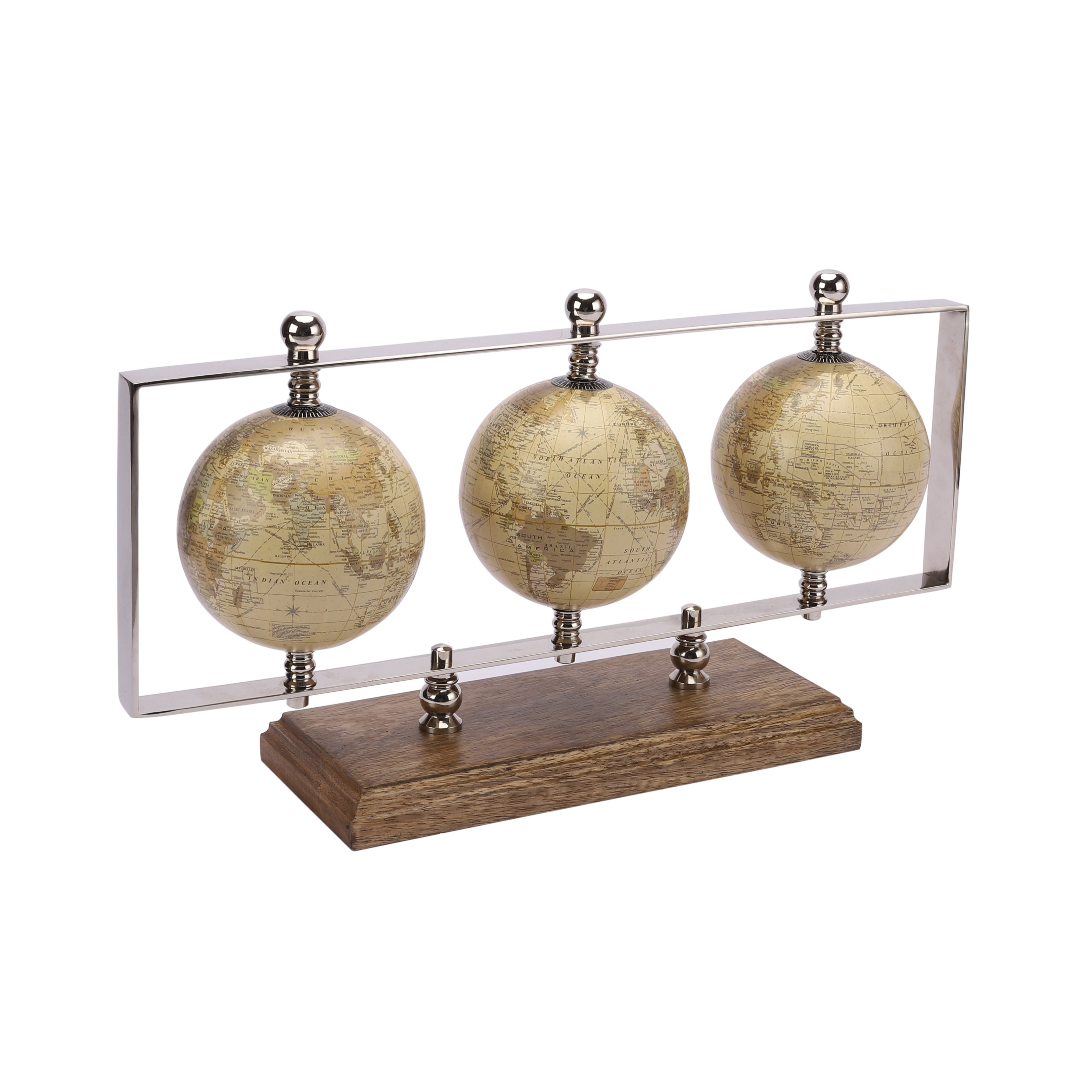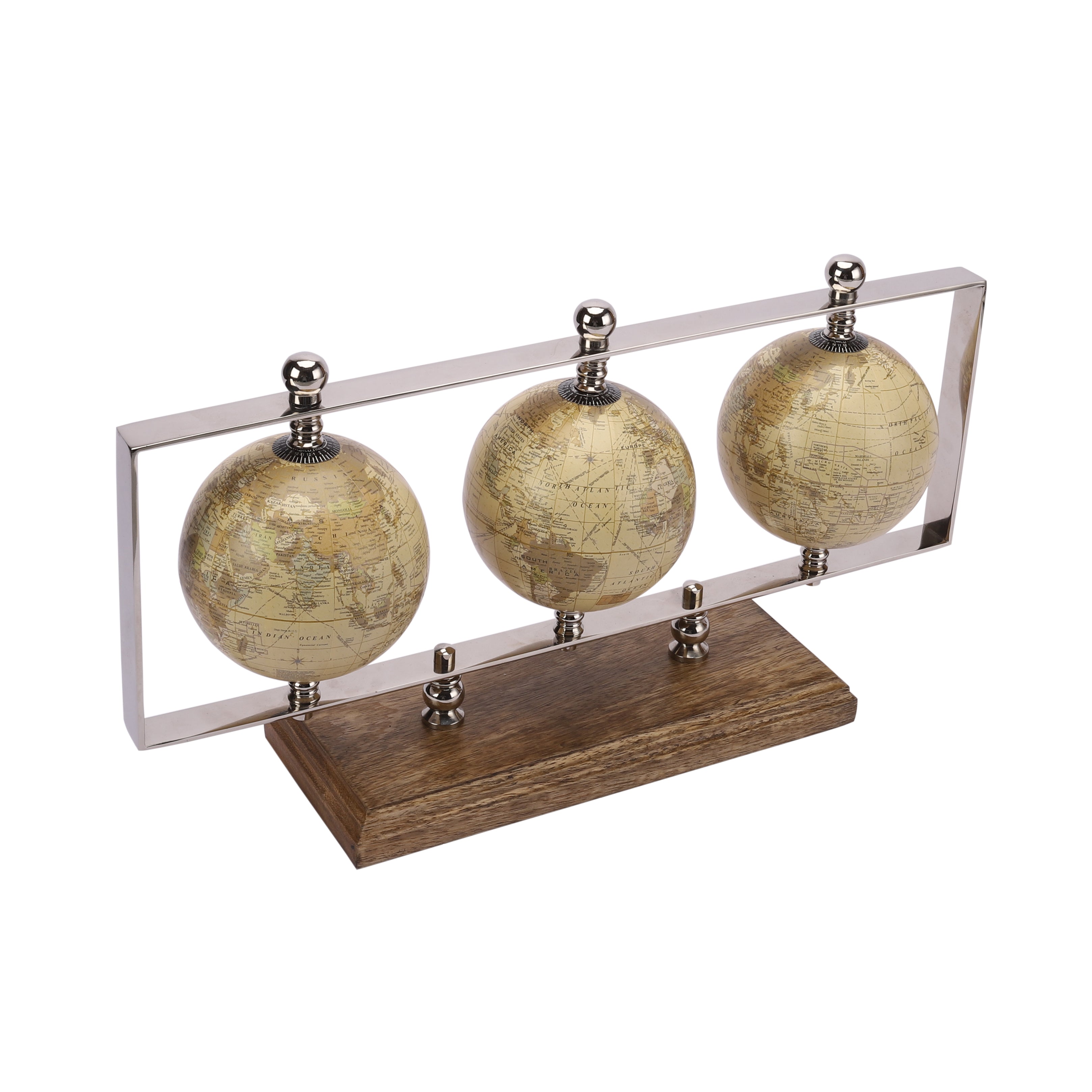 The " Triple horizontal Globe" By Decor De Maison Is Perfect Accessory For Decoration Of Home Or Office. The High Quality Wooden Base Nestles N Itself A Stand With Three Revolving Globes Making It A Perfect Accessory For Gifting In Offices Or Sitting In Your Shelves.