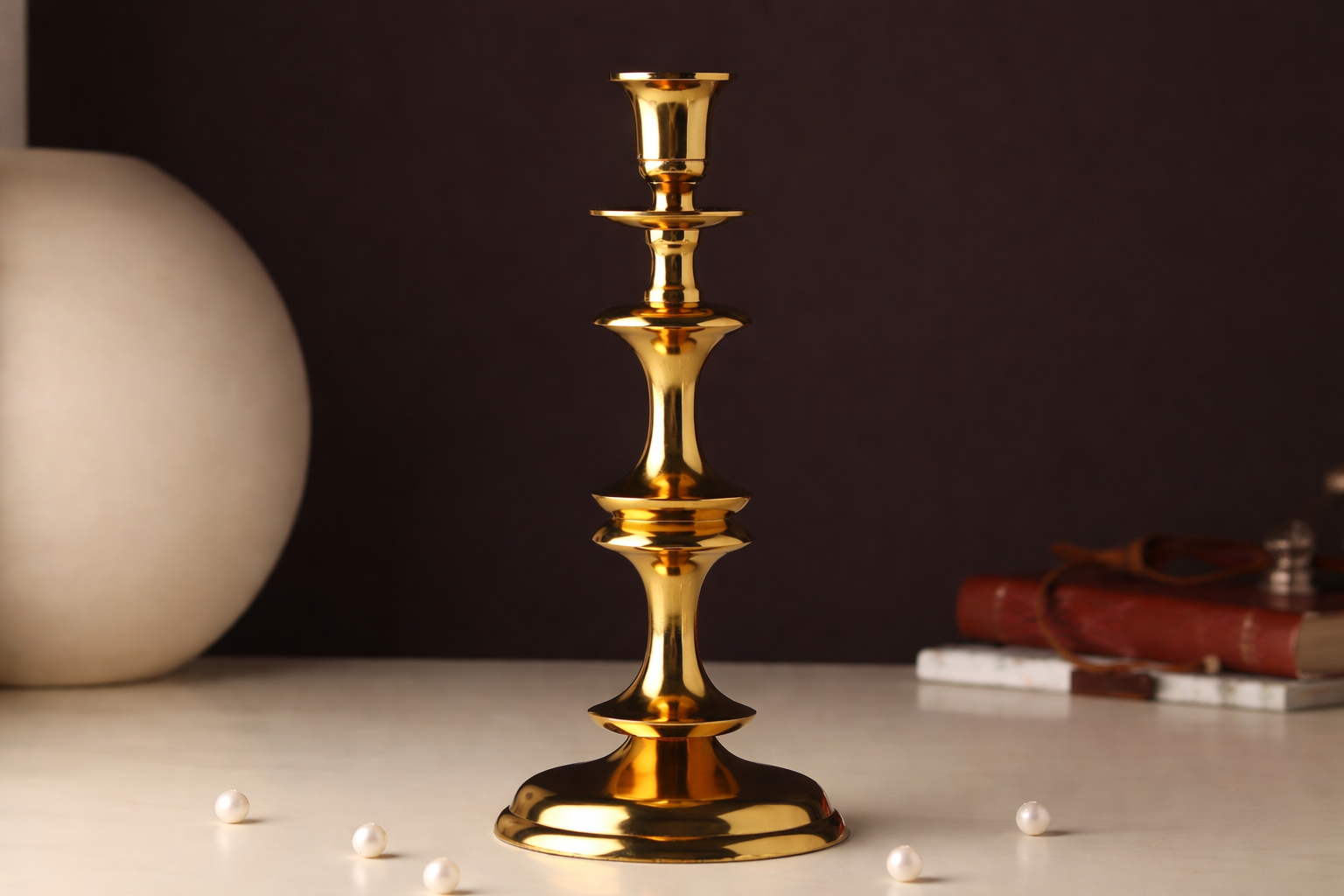 Sleek and statuesque, the Imperium Solo Tall Gold Candleholder adds a vertical statement of poise and authority. Perfect for flanking a mantle or enhancing a modern tablescape, it embodies minimalist luxury with imperial charm. Combine it with other Imperium Candle Holders to complete the look