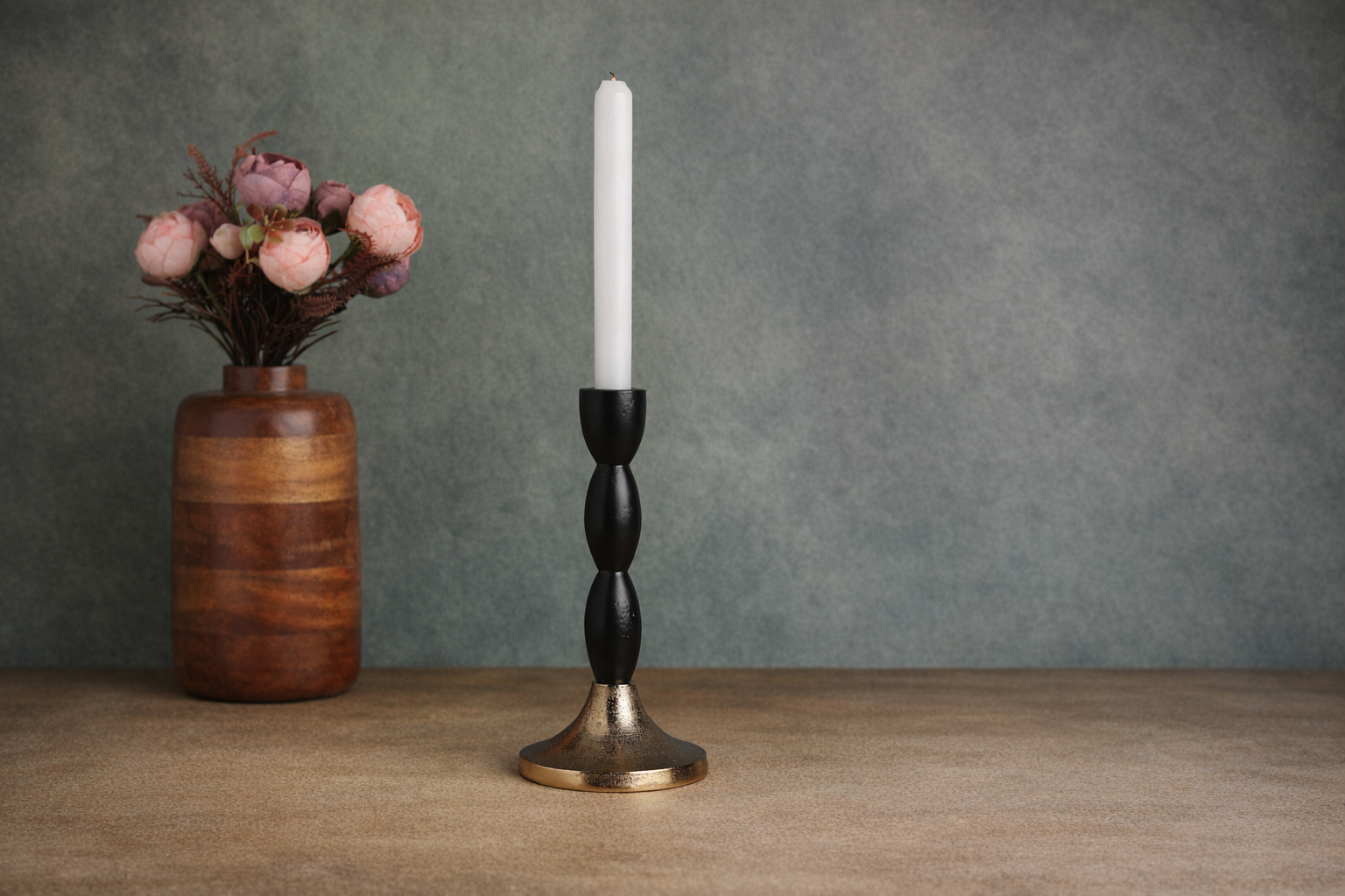 De Maison Decor Introducing A sleek and stylish accent for your space. With its captivating spiral design in Black Gold tone, this holder adds modern elegance to any setting. Perfect for showcasing your favorite candles, it effortlessly enhances the ambiance with its understated charm.