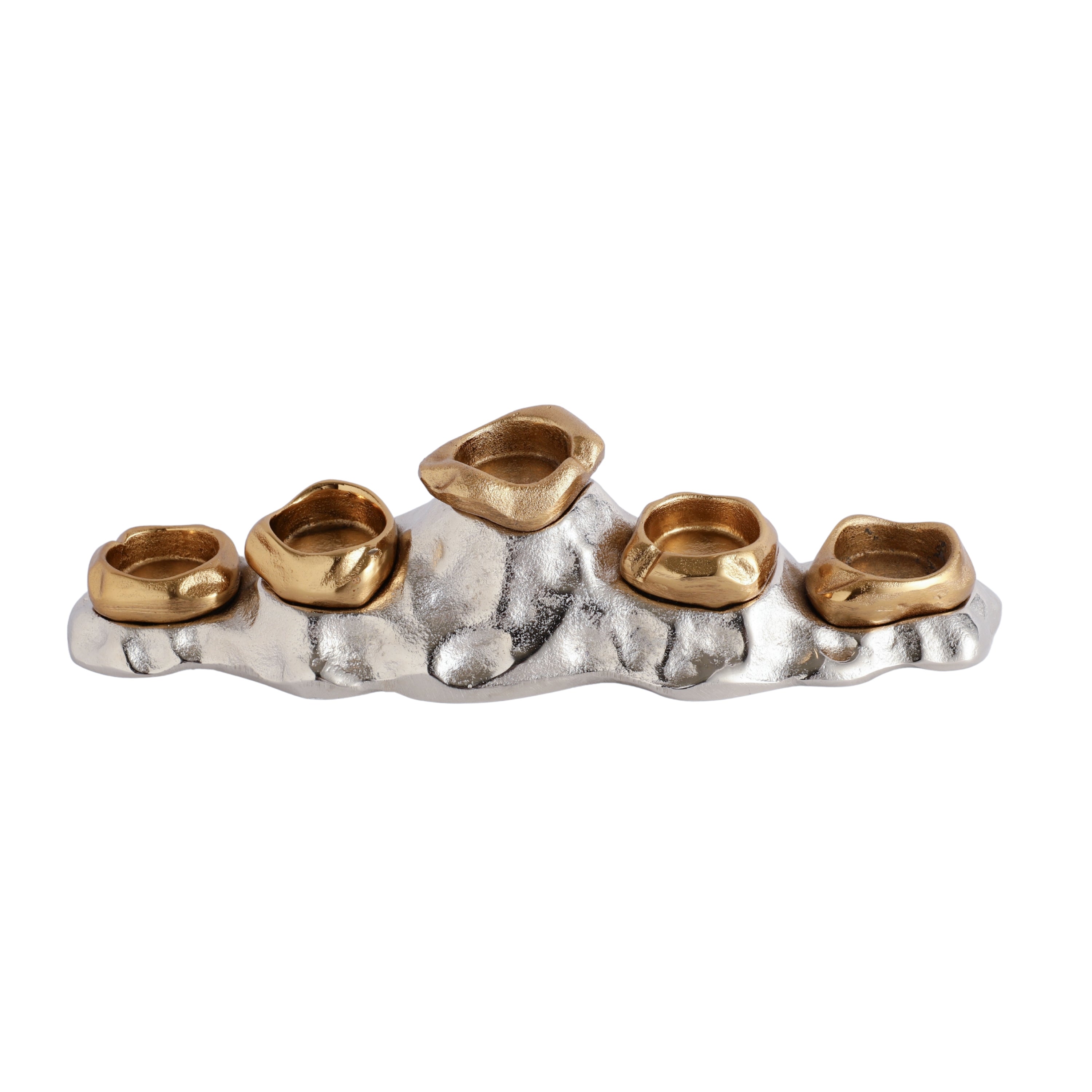 Born from the meeting of texture and light, the Eclora Tea-Light Holder captures the beauty of contrast — rugged on the outside, serene within. Its metallic shell, reminiscent of nature’s raw formations, cradles a dark, reflective heart where the flame comes alive. When lit, it blooms softly, casting ripples of warmth and shadow — an artful echo of earth’s quiet luminosity.