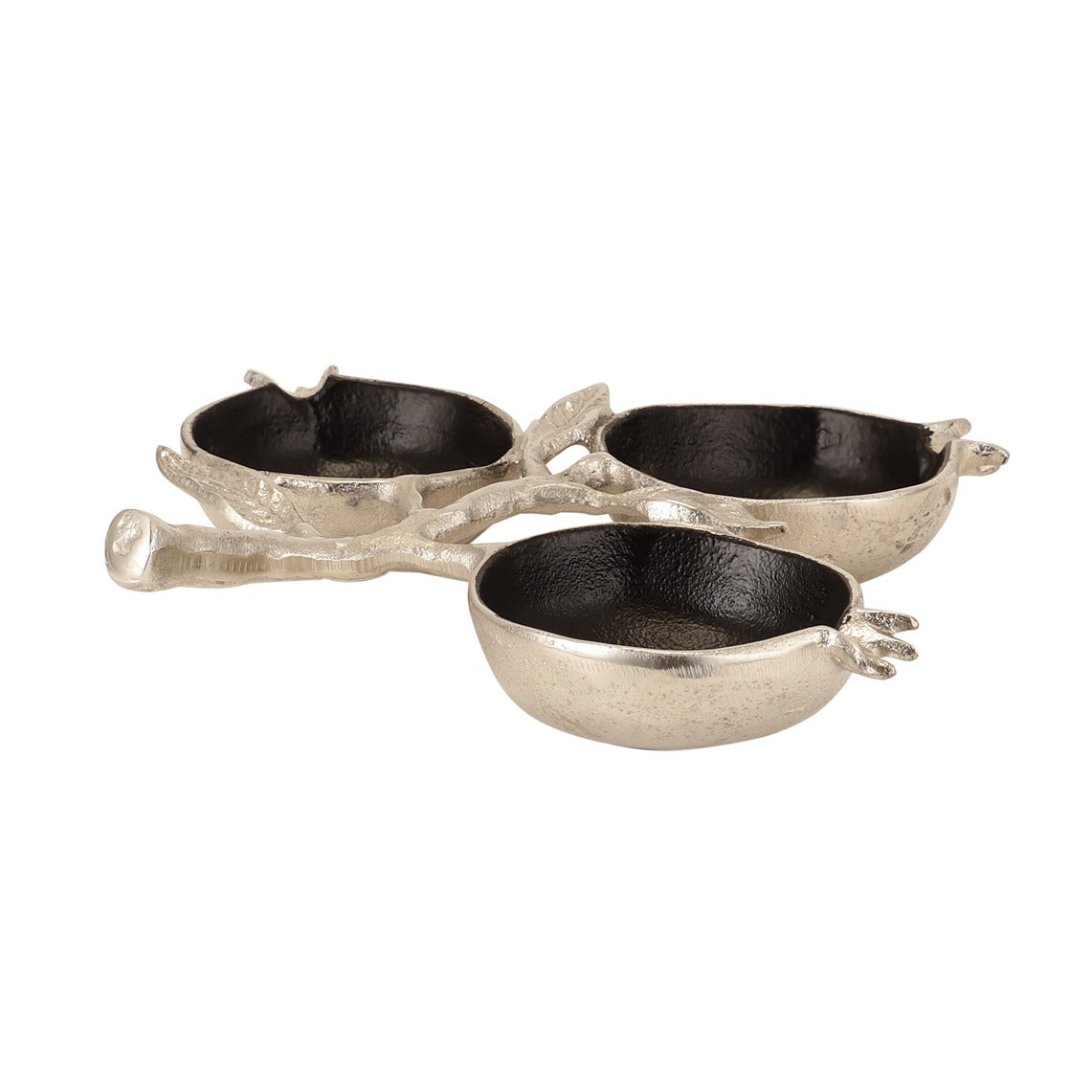 Pomegranate Metal three Leaf Platter in Silver Black